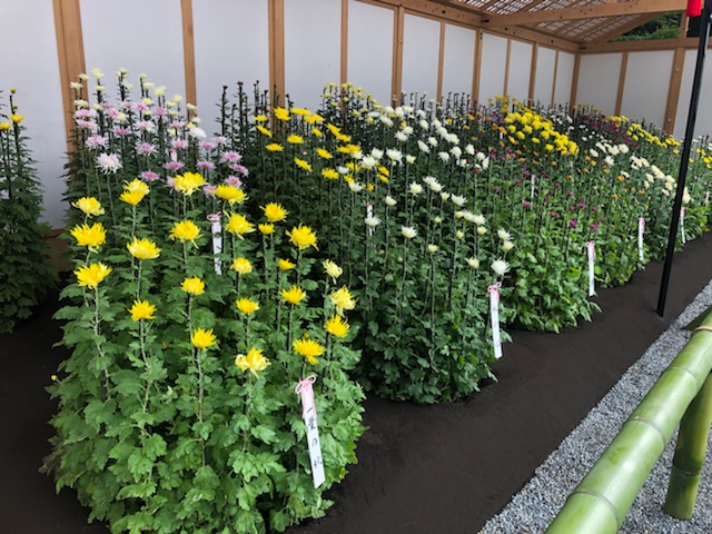 新宿御苑の菊花壇は、回遊式の日本庭園内に上家を設け、特色あふれる菊の花々を独自の様式を基調とした花壇です。